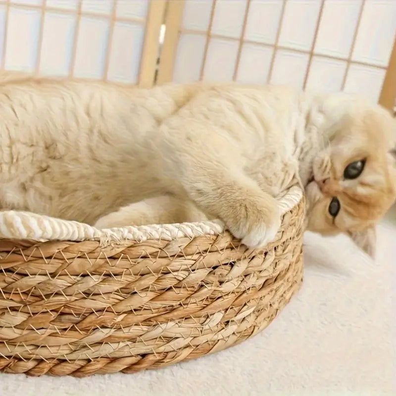 Ręcznie wykonany kosz wiklinowy dla kota