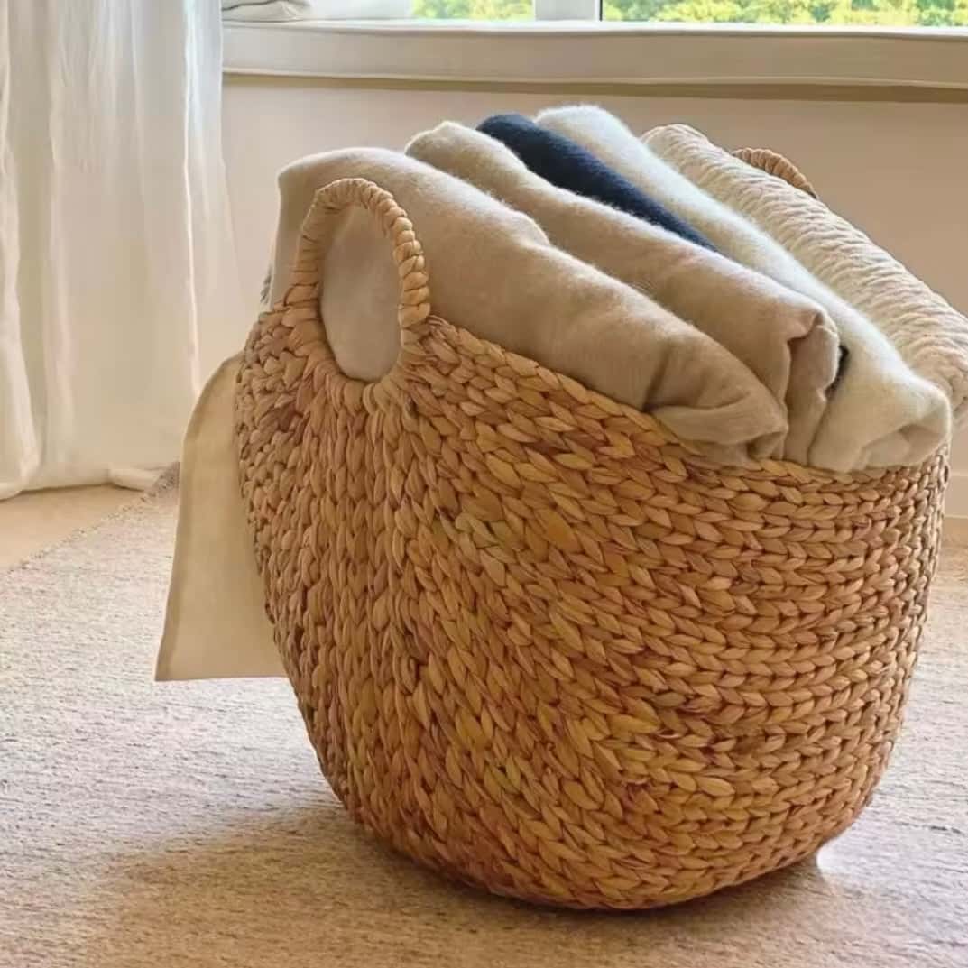 Wprowadź do swojej łazienki delikatność i wyrafinowanie dzięki temu wiklinowemu koszowi na pranie. Ręcznie pleciony z hiacyntu wodnego, wysokiej jakości naturalnego materiału, kosz łączy w sobie czysty, minimalistyczny design oraz solidność. Jego naturalny kolor i rzemieślniczy splot tworzą ciepłą, harmonijną atmosferę – idealną do jasnych wnętrz lub jako kontrast dla drewna i juty.
